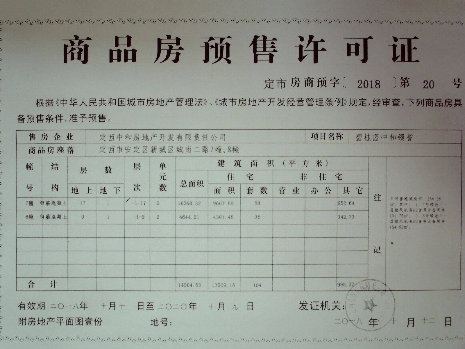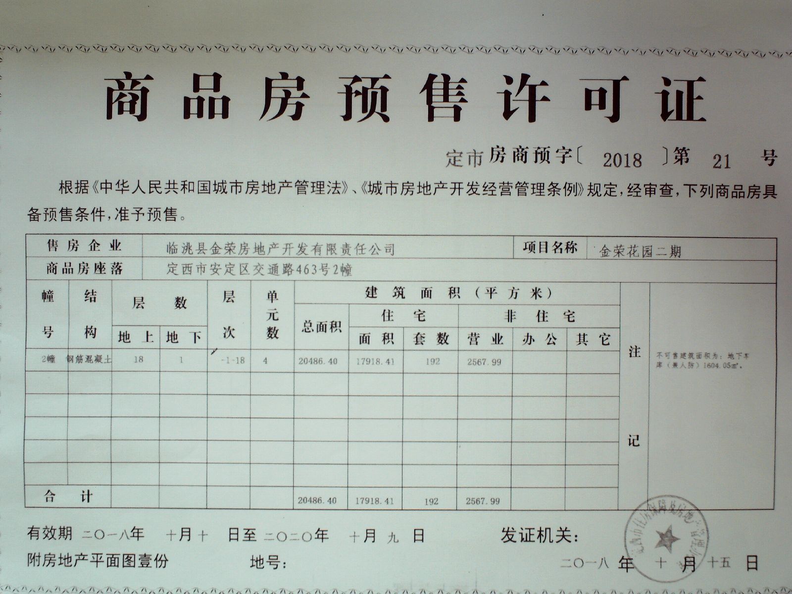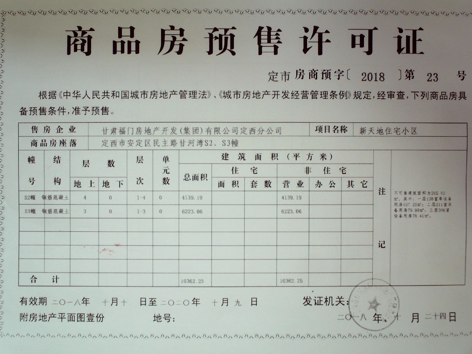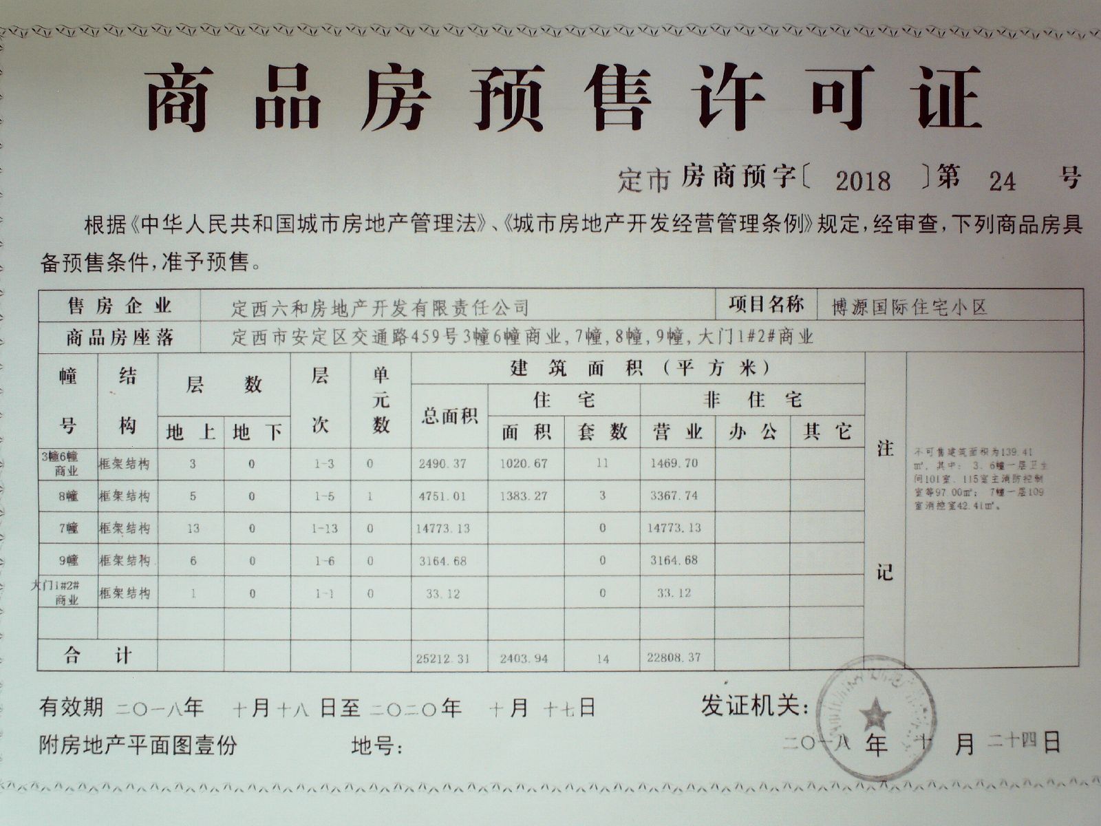 附件:定市房商预字【2018】20、21、22、23、24号商品房预售许可证。