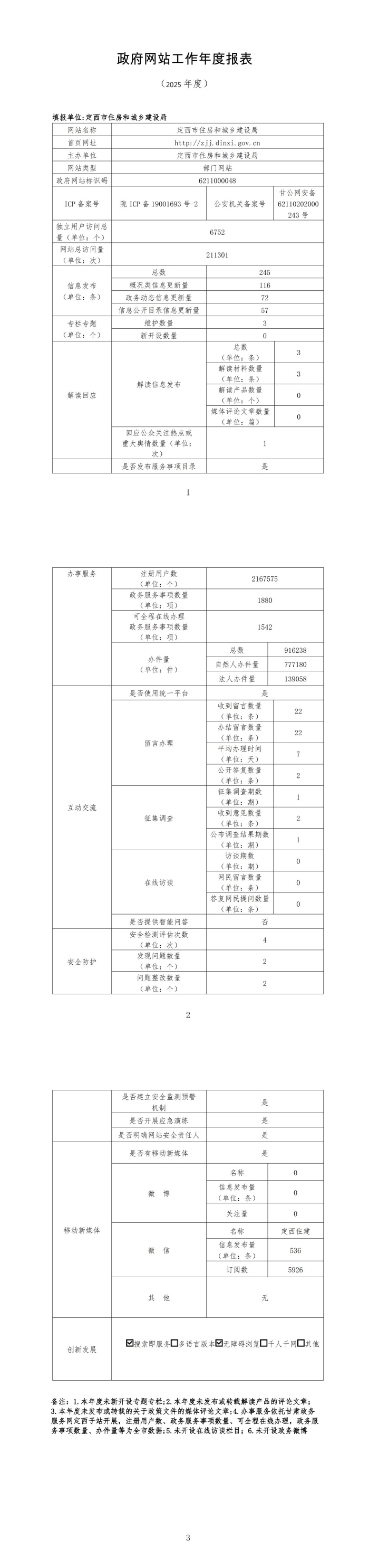 定西市住房和城乡建设局2025年政府网站工作年度报表